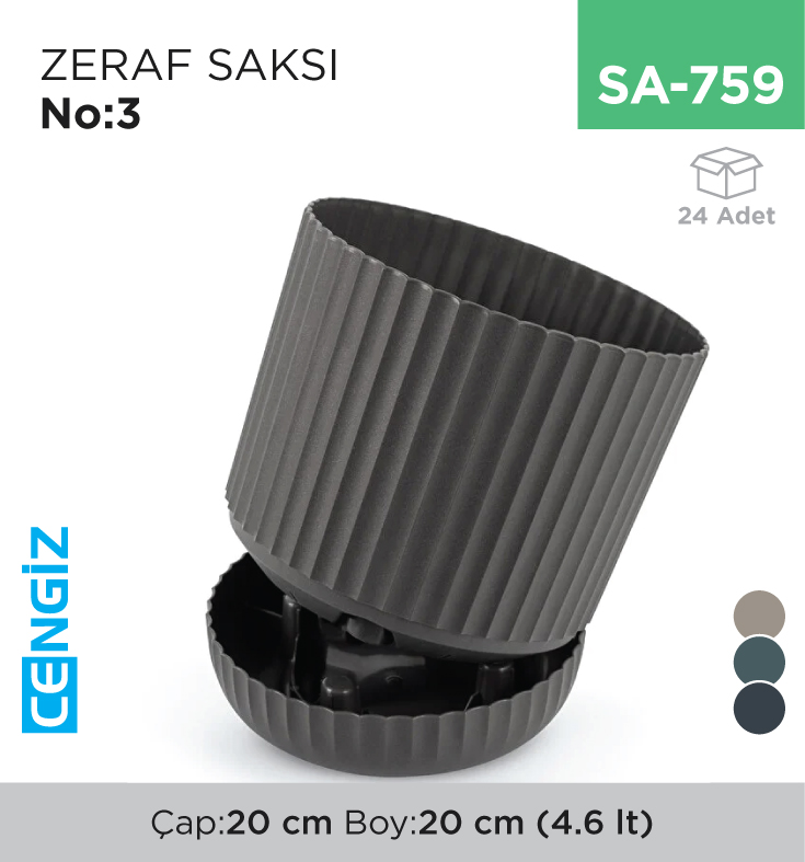 Saksı Market bünyesinde sunulan ZERAF SAKSI NO:3 (KRS-263) (Stok Kodu: SA-759), İÇ MEKAN SAKSILARI kapsamında değerlendirilen ve iç mekân kullanımına uygun alternatifler arasında bulunmaktadır.